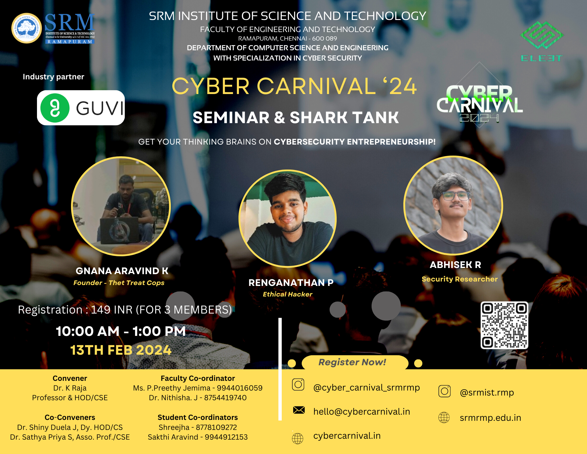 Get ready to engage your thinking brains at Seminar & Shark Tank, where innovation meets opportunity in a dynamic fusion of ideas and entrepreneurship! This unique event offers a platform for aspiring entrepreneurs and innovators to showcase their groundbreaking concepts and vie for investment opportunities. In the seminar sessions, participants delve into thought-provoking discussions, gaining insights from industry experts and thought leaders. Then, in the adrenaline-charged Shark Tank segment, aspiring entrepreneurs pitch their ideas to a panel of seasoned investors, who scrutinize, negotiate, and potentially fund the most promising ventures. Seminar & Shark Tank is not just about ideas; it's about turning dreams into reality, forging connections, and igniting the spark of innovation. Join us as we unleash the power of creativity and entrepreneurship, inspiring the next generation of trailblazers and innovators!