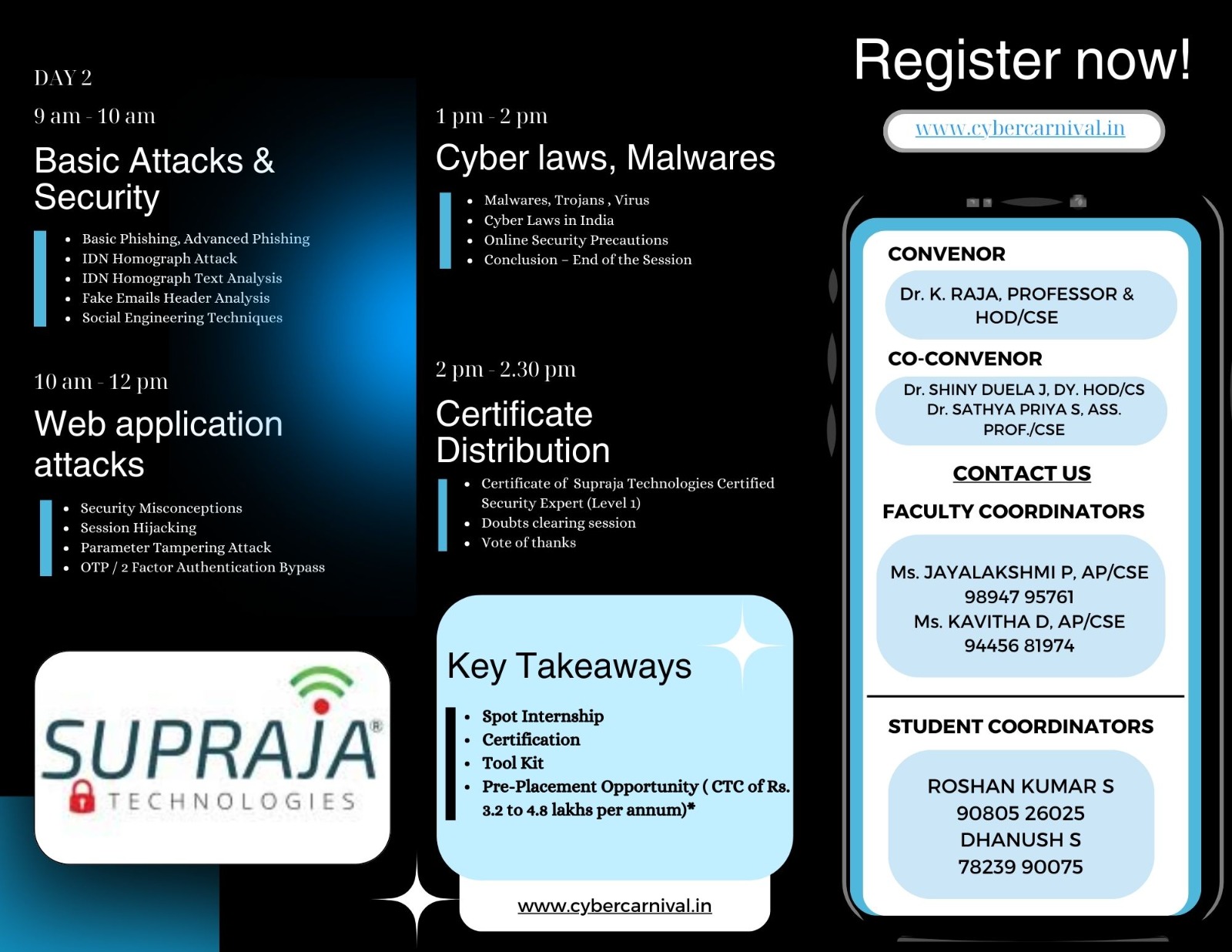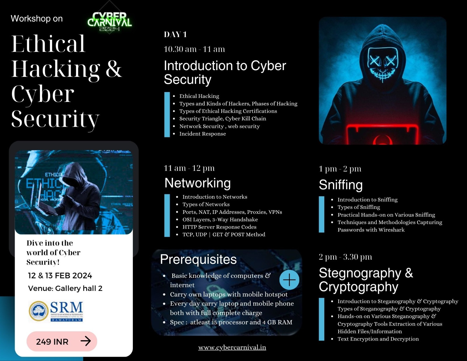 Join our dynamic workshop on Sniffing, Steganography, Cryptography, Basic Attacks, and Offensive Security! Delve into the intricacies of network sniffing, uncovering hidden messages through steganography, and mastering cryptographic techniques. Explore the fundamentals of basic attacks and offensive security strategies to fortify your digital defenses. Led by seasoned experts in cybersecurity, this workshop offers hands-on experience and invaluable insights into the world of information security. Whether you're a novice or a seasoned professional, expand your knowledge and sharpen your skills in this comprehensive training session. Don't miss out on this opportunity to enhance your understanding of cybersecurity essentials!
